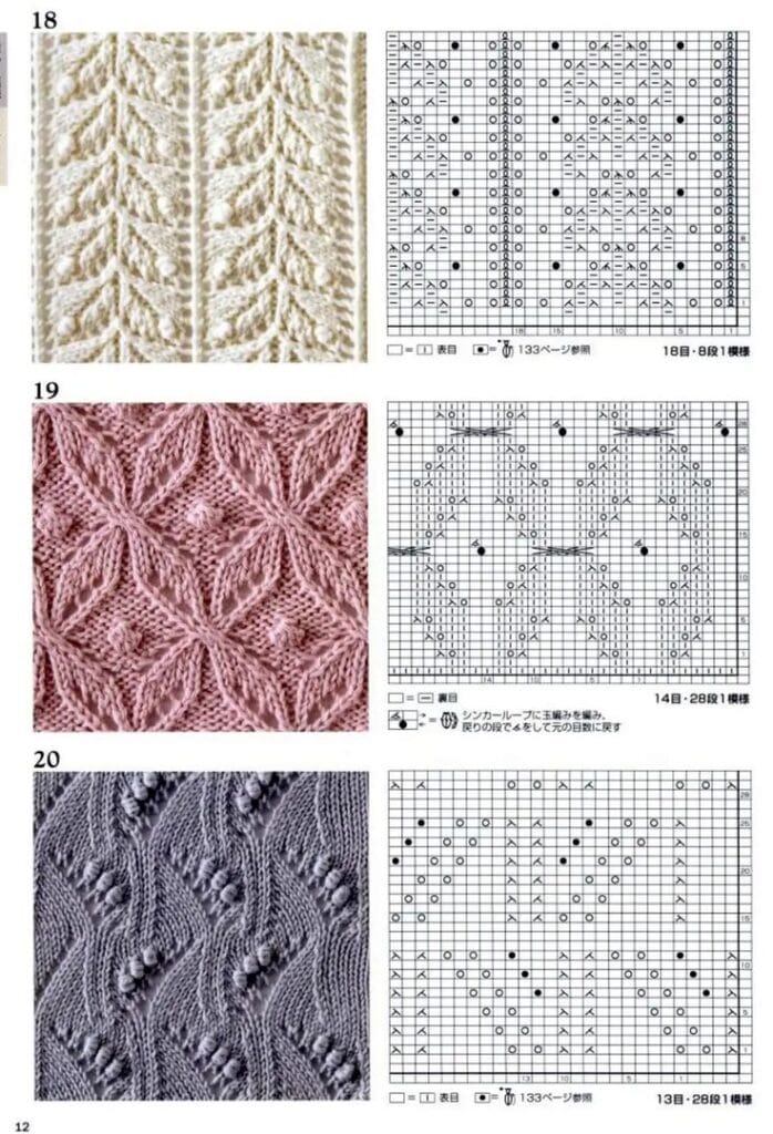 - Common Increases & Decreases: YO (yarn over), K2tog, SSK, and SKP each create or shape the open holes.